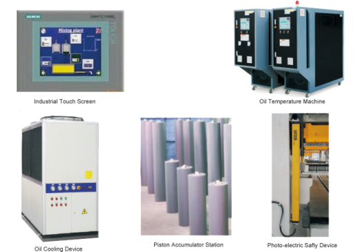 Movable Table, Displacement Sensor, Knocking Device, Mould Exchanging Trolley, Cooling Device, Cushion Device, Photo-electric Safety Device System Oil Heating Device, Industrial Touch Screen, Automati